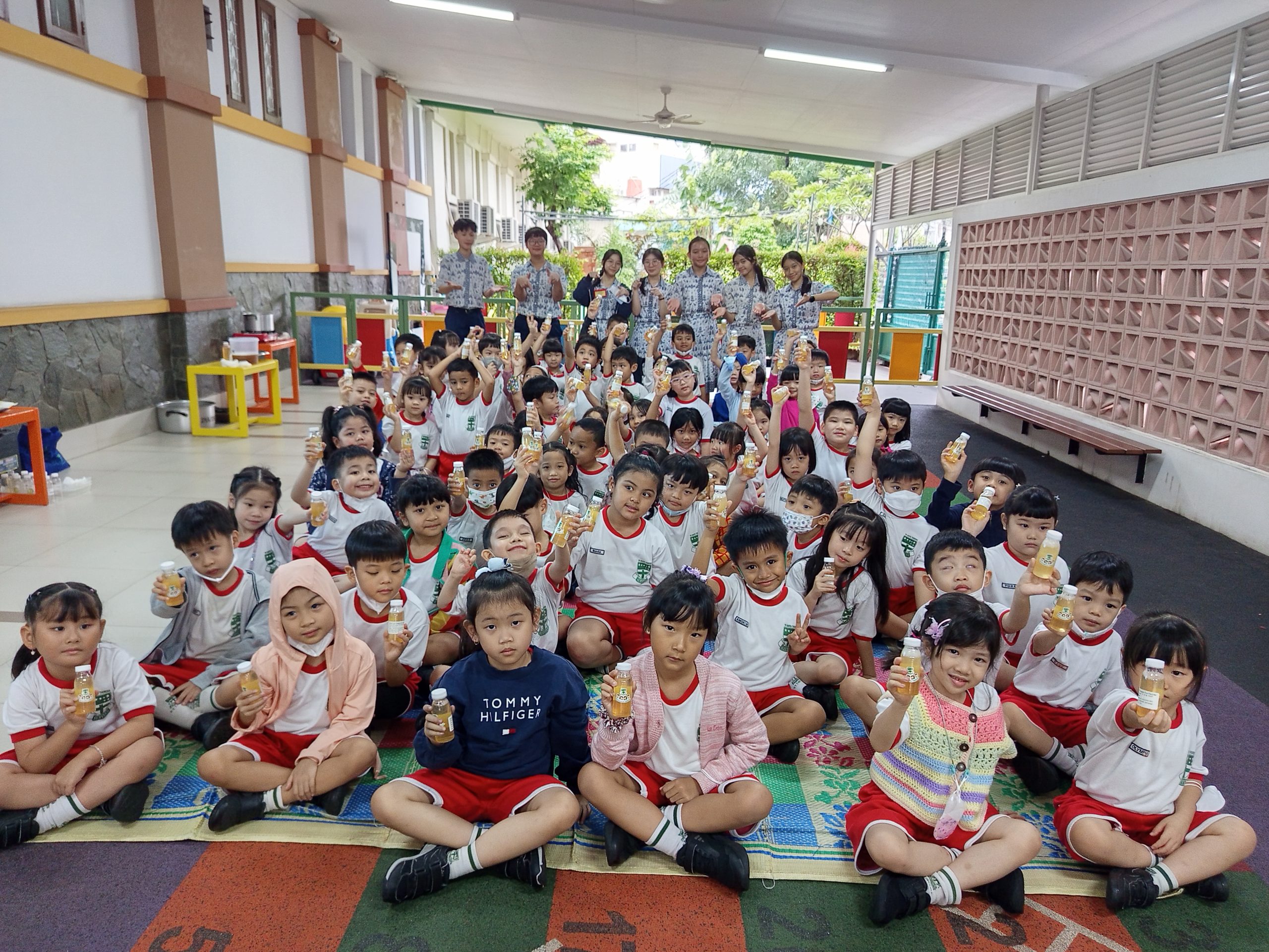 Anak TK B sangat senang sekali mereka bisa membuat sabun eco enzym bersama kakak-kakak SMP.