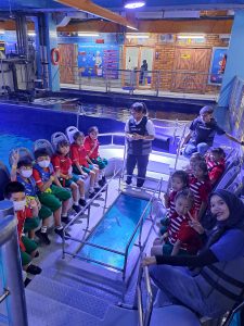 Selama kunjungan, anak-anak diajak menjelajahi berbagai akuarium besar berisi aneka biota laut, mulai dari ikan hias yang berwarna-warni, ubur-ubur, bintang laut, hingga hiu dan pari. Mereka mendengarkan penjelasan dari pemandu tentang jenis-jenis hewan laut, habitatnya, cara hidupnya, serta pentingnya menjaga kelestarian laut. Melalui kegiatan ini, siswa tidak hanya bersenang-senang, tetapi juga belajar mencintai ciptaan Tuhan dan menghargai lingkungan hidup.