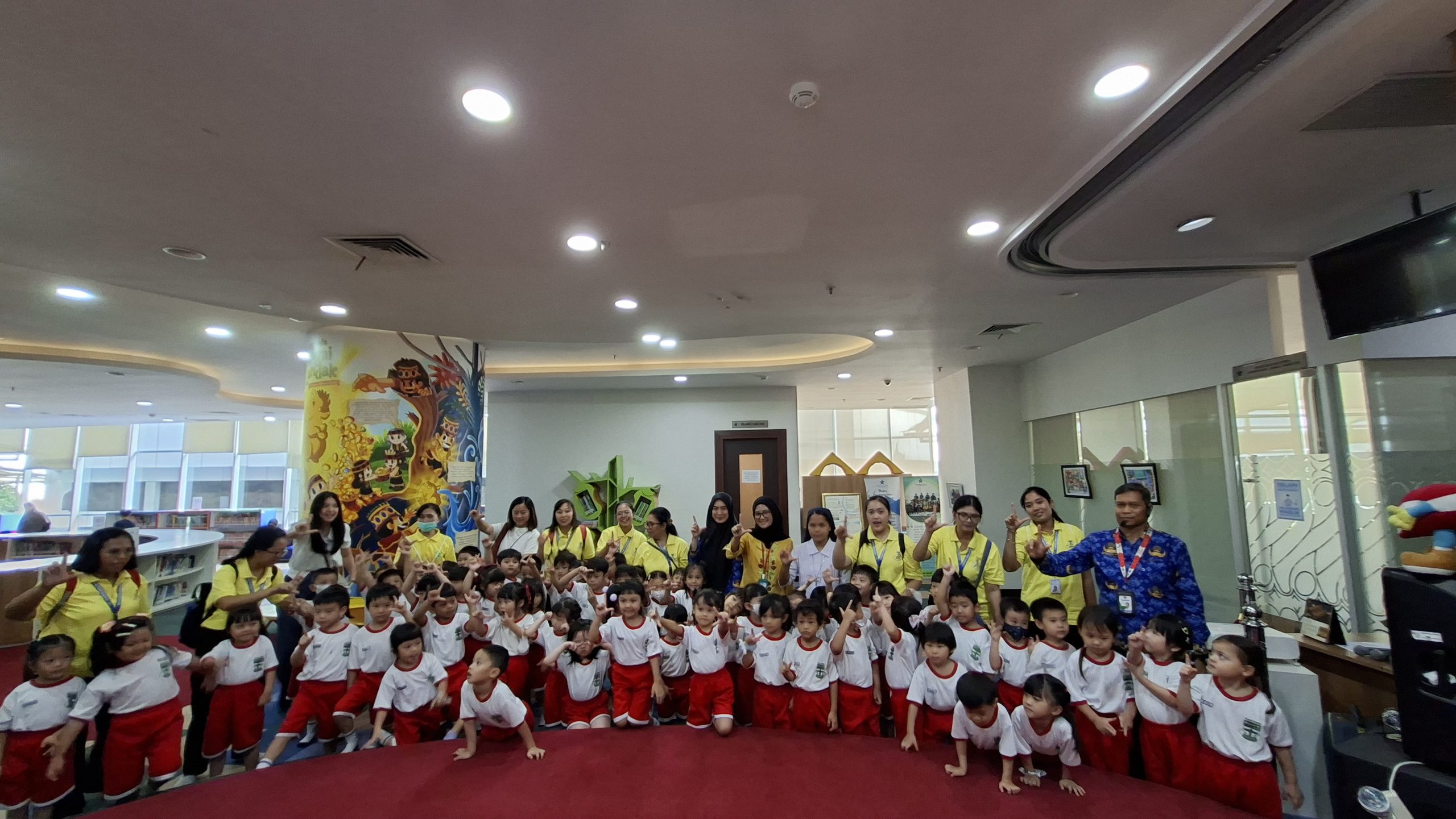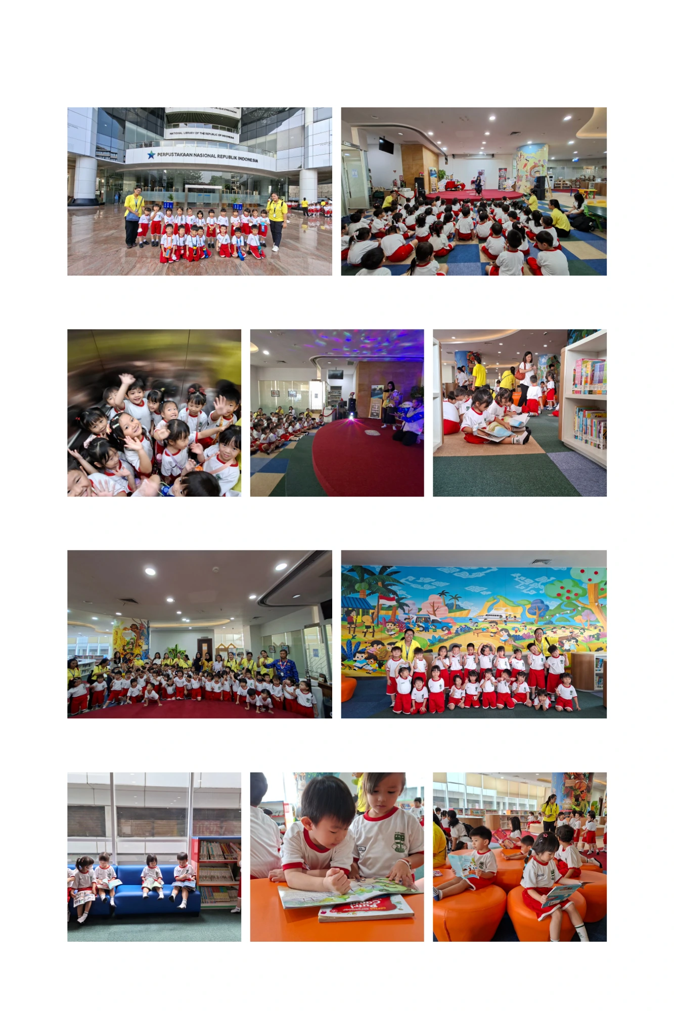 Pada tanggal 16 Oktober 2025, anak-anak TK A mengikuti kegiatan kunjungan ke perpustakaan sekolah. Mereka diajak mengenal berbagai jenis buku, belajar cara merawat buku dengan baik, serta mendengarkan sesi mendongeng dari guru. Anak-anak tampak antusias memilih buku favorit mereka dan belajar tata tertib saat berada di perpustakaan. Kegiatan ini menumbuhkan minat baca, rasa ingin tahu, dan kemandirian anak sejak dini.