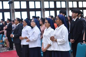 Sabtu, 18 Mei 2024 SMA Santa Theresia menggelar acara graduation. Kegiatan ini diikuti oleh 154 peserta didik kelas XII. Jumlah tersebut terdiri atas 93 peserta didik kelas XII IPA dan 61 IPS. Acara diawali dengan misa pukul 15.00 WIB dan dilanjutkan dengan prosesi wisuda. Acara yang digelar setiap tahun sekali ini mengusung tema “Integrity: Guiding light to Success”. Tema ini memberikan pesan dan harapan kepada wisudawan untuk terus memegang teguh integritas dalam setiap langkah hidupnya. Graduation yang berlangsung kurang lebih lima jam ini berjalan tertib sehingga menciptakan suasana hangat dan penuh suka cita. Selamat dan sukses selalu untuk Theresian 64, selamat mengepakkan sayap lebih tinggi lagi, dan siap menggapai cita.