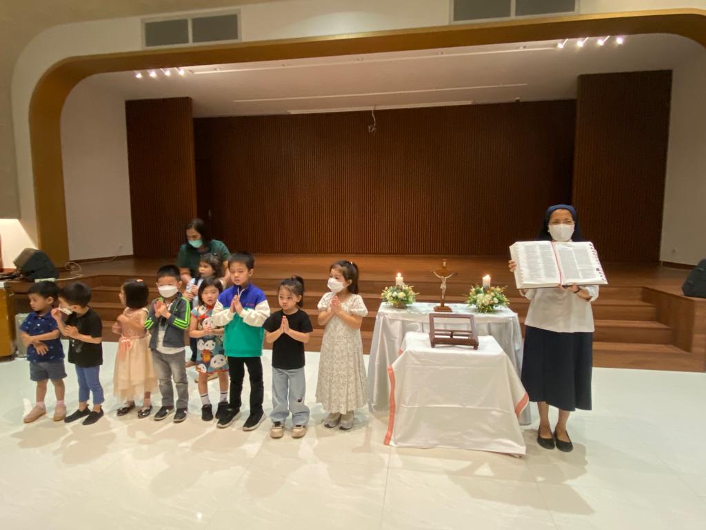 Ibadat Pembukaan Bulan Kitab Suci Nasional yang diadakan pada tanggal 1 September 2023, dipimpin oleh Sr. Hersin, OSU serta perwakilan beberapa anak dari setiap kelas.