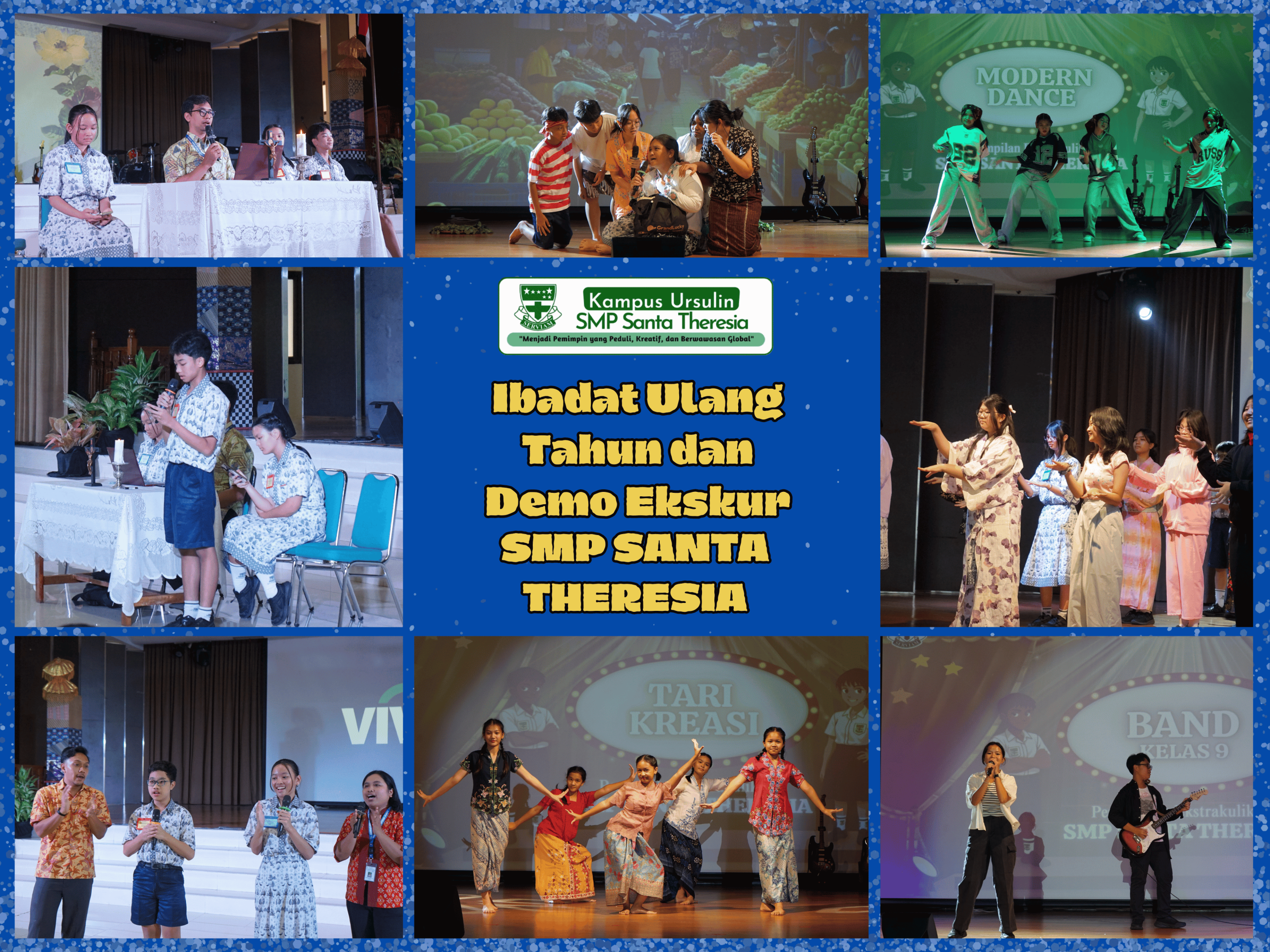Dalam rangka memperingati ulang tahun SMP Santa Theresia, seluruh warga sekolah berkumpul dalam Ibadat Syukur yang penuh sukacita. Melalui doa, pujian, dan renungan singkat, kami mengucap syukur atas penyertaan Tuhan yang senantiasa memimpin langkah sekolah kami dalam mendidik dan membentuk generasi penerus bangsa.