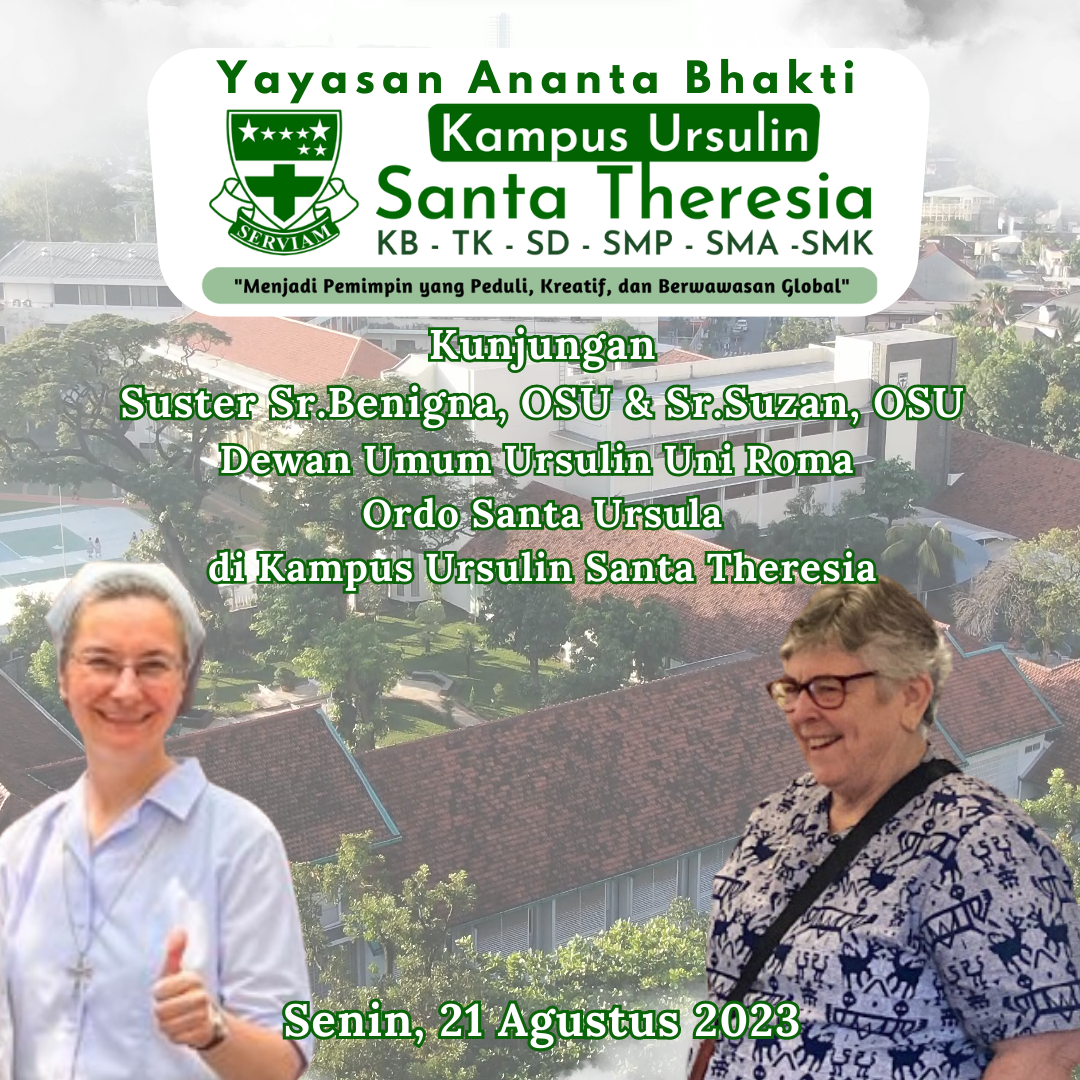 Kunjungan Sr.Suzan Flood,OSU & Sr.Benigna, OSU – Dewan Umum Ursulin Uni Roma Ordo Santa Ursula di Kampus Ursulin Santa Theresia Jakarta berlangsung di hari Senin, 21 Agustus 2023