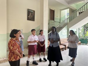 Dalam kunjungannya, Sr. Alice berkesempatan berkeliling melihat berbagai kegiatan belajar-mengajar di kelas, mengunjungi fasilitas sekolah, serta berbincang akrab dengan para guru dan siswa. Ia pun membagikan kisah inspiratif tentang pelayanan pendidikan dan kehidupan religius di Kenya. Ceritanya memberikan semangat dan membuka wawasan kami tentang bagaimana nilai-nilai kasih, pelayanan, dan pendidikan dijalankan dalam semangat Ursulin di belahan dunia lain.