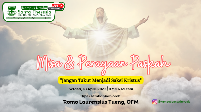 Misa dan perayaan Paskah Insieme Kampus Ursulin Santa Theresia dilaksanakan secara langsung dan live streaming Youtube dari Auditorium Kampus Ursulin Santa Theresia