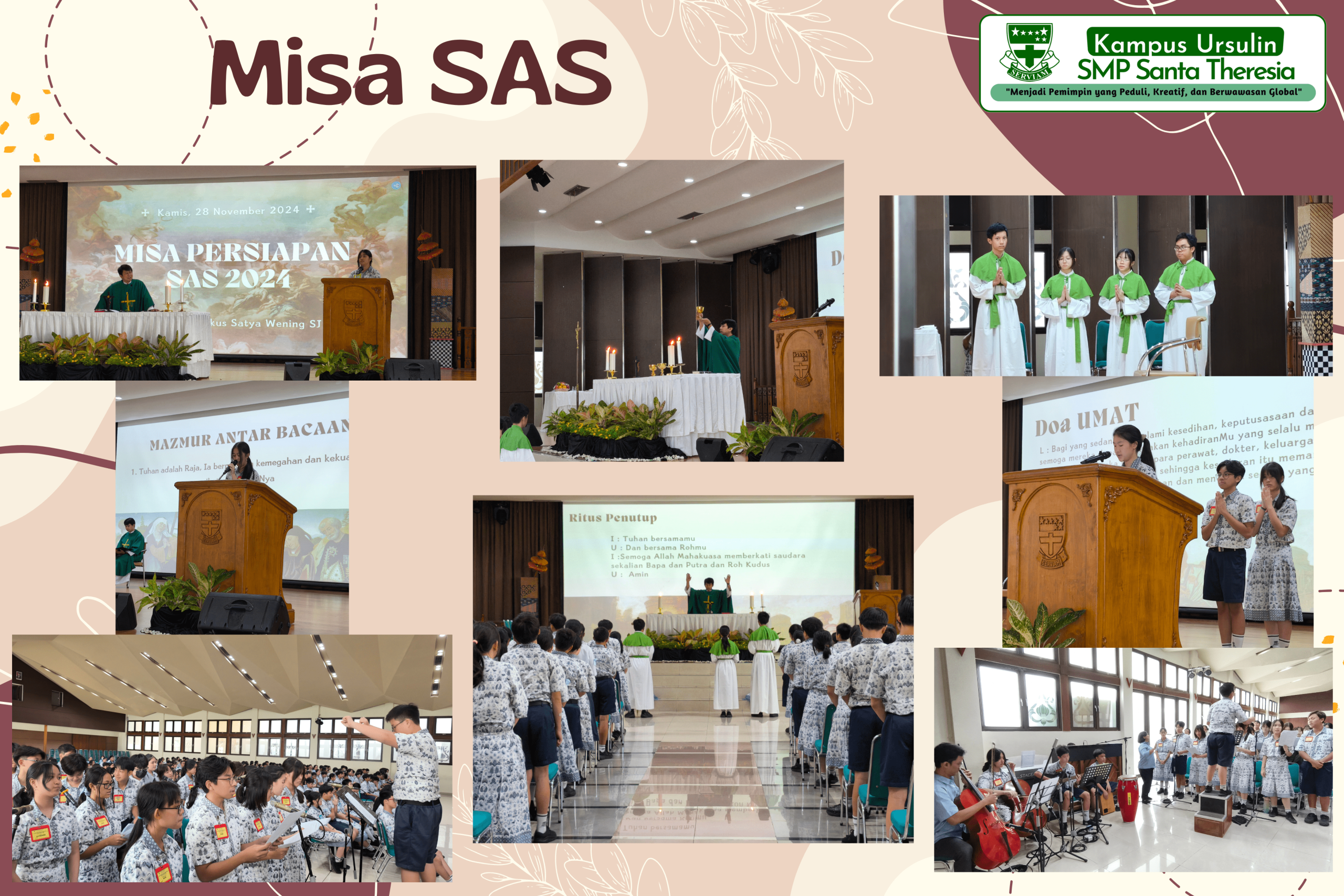 Kampus Ursulin Santa Theresia selalu menyelenggarakan kegiatan dan event yang bermanfaat bagi siswa-siswi TK-KB, SD, SMP, SMA dan SMK. dibawah ini beberapa event dan kegiatan diselenggarakan
