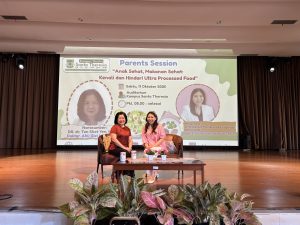 Dalam rangka mendukung tumbuh kembang anak yang optimal, serta meningkatkan kesadaran orang tua mengenai pentingnya pola makan sehat, telah dilaksanakan kegiatan Parent Session dengan tema “Anak Sehat, Makanan Sehat: Kenali dan Hindari Ultra Processed Food”.