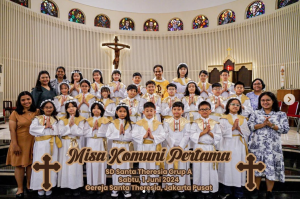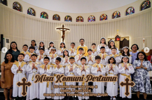 Komuni Pertama adalah tanda bahwa kalian semakin dekat dengan Yesus. Seperti saat kita mengundang sahabat baik ke rumah, begitu juga Yesus ingin datang ke hati kalian dan tinggal bersama kalian setiap hari. Melalui Komuni, Yesus memberi kita kekuatan untuk menjadi anak yang baik, sabar, penuh kasih, dan suka menolong sesama. Tuhan memberkati.