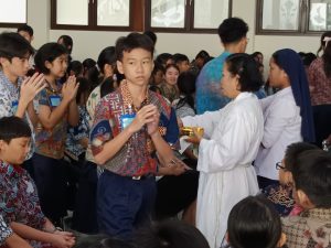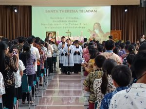 Perayaan Hari Santa Theresia tahun ini diselenggarakan dengan penuh sukacita dan kebersamaan. Acara diawali dengan perayaan Ekaristi pada Rabu, 1 Oktober 2025 sebagai ungkapan syukur atas teladan hidup Santa Theresia yang menginspirasi semangat pelayanan dan kasih sederhana dalam keseharian. Perayaan Ekaristi dipimpin oleh Rm. Pius Novrin Arimurthi, Pr diikuti oleh seluruh peserta didik, tenaga pendidik, tenaga kependidikan dan tenaga penunjang dengan tema “ Santa Theresia teladan kesungguhan dalam iman dan karya” serta diiringi oleh paduan suara insieme dan Saint Theresia Orchestra (STO).