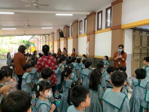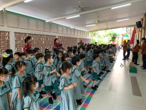 Untuk menumbuhkan nilai karakter dan empati, anak-anak juga diajak mendengarkan cerita inspiratif dan doa lintas agama yang dipandu guru.