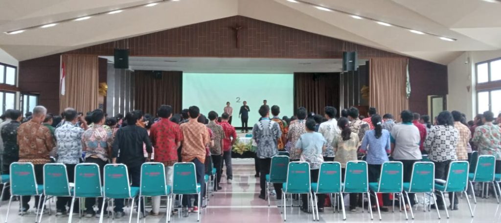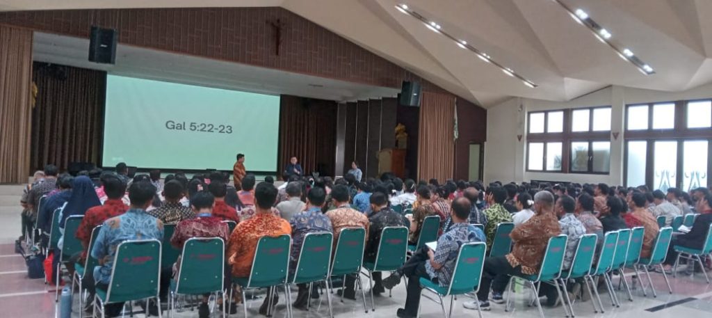 Rekoleksi dilaksanakan pada Jumat 19 Desember 2025 di auditorium Santa Theresia, dibimbing oleh Rm. Antonius Baur Asmoro, Pr dengan tema “Kita dipanggil untuk menjadi mitra kerja Allah.”
