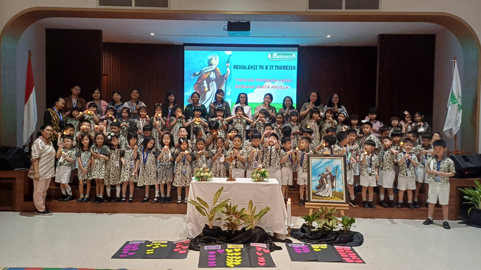 Rekoleksi untuk peserta didik TK diselenggarakan pada tanggal 17 Februari 2024 untuk TK A dan 24 Februari 2024 untuk TK B, dengan mengangkat nilai-nilai teladan Santa Angela “Menjadi Pembawa Kasih”.