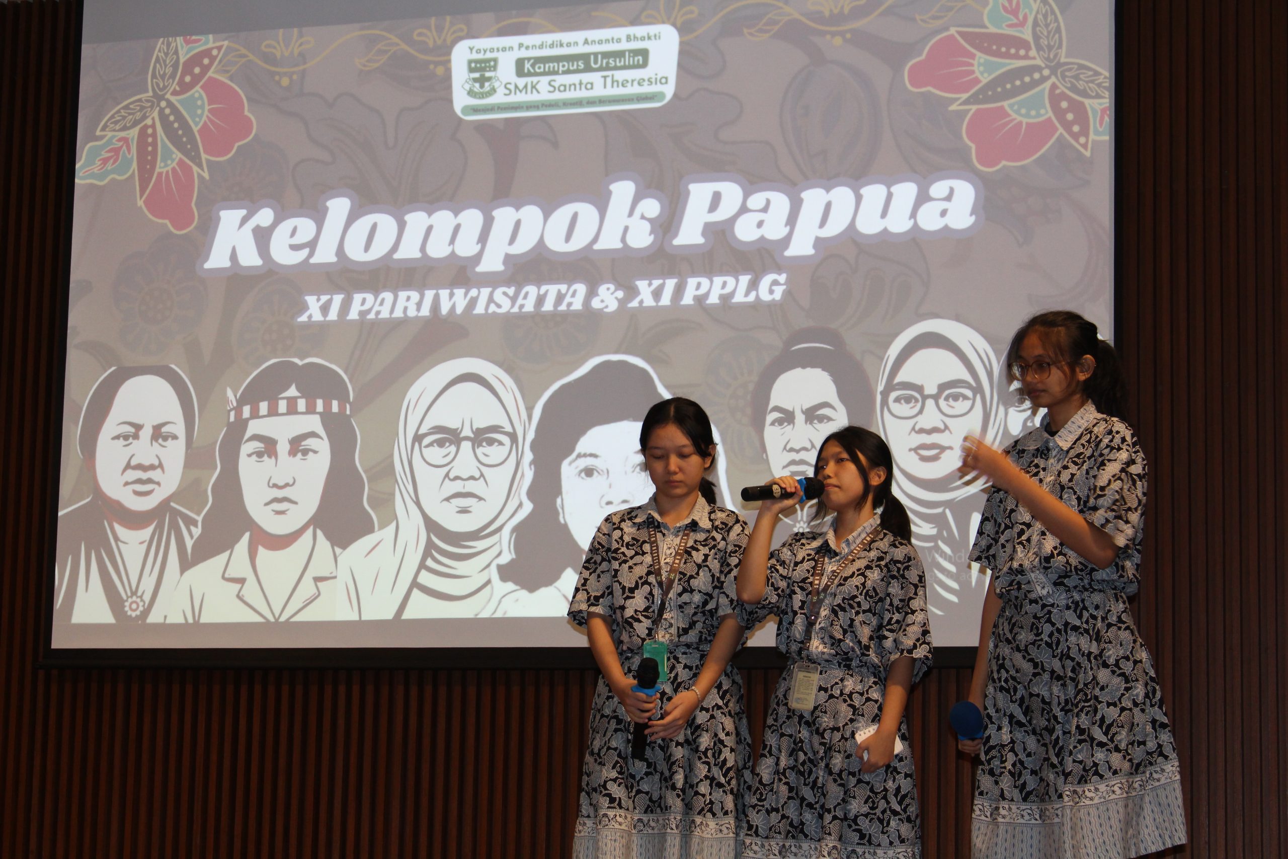 Memperingati hari Kartini 2025, SMK Santa Theresia menyelenggarakan presentasi projek Integrated learning dengan tema “Para Perempuan Perawat Keberagaman”. Presentasi Integrated learning dilaksanakan pada Jumat 25 April di Hall Sekolah Santa Theresia. Integrated learning ini dalah projek bersama beberapa mata pelajaran seperti; Bahasa Indonesia, Pendidikan Agama Katolik, PKn, Antropologi, Sejarah, Matematika, dan informatika. Dalam projek Integrated Learning para peserta didik mengulas para tokoh perempuan dari daerah nusantara yang memperjuangkan semangat keberagaman, perjuangan dan kesamaan derajat kaum wanita. Selanjutnya para peserta didik membuat pesan untuk para Kartini zaman sekarang dan di masa yang akan datang terinspirasi dari perjuangan para perempuan inspiratif dari nusantara tersebut. Melalui kegiatan Integrated learning ini para peserta didik belajar dan mengambil inspirasi dari para tokoh tersebut dilihat dari berbagai macam pelajaran yang diajarkan di SMK Santa Theresia.