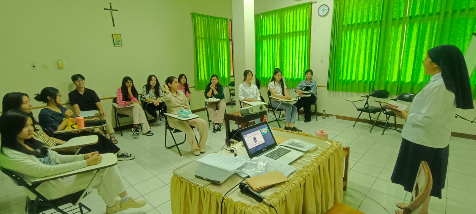 Pada tanggal 8-10 Januari 2025, para peserta didik SMK St. Theresia kelas XII mengikuti retreat di rumah retreat Canossa-Bintaro. Retreat ini adalah kegiatan tahunan yang wajib diikuti oleh seluruh peserta didik kelas XII dengan tema: “Diutus Menjadi Berkat.” Melalui retreat ini para peserta didik diajak untuk merefleksikan pengalaman mereka serta memantapkan motivasi untuk meneruskan kuliah lanjut atau langsung terjun ke dunia kerja. Harapannya adalah para peserta didik menyadari diri sebagai pribadi yang dipanggil, dipilih, serta dikasihi Tuhan sehingga mampu menjadi berkat bagi siapapun. Kegiatan retreat ini dilaksanakan dengan bantuan Tim Pastoral Kampus St. Theresia yang bertindak sebagai fasilitator.