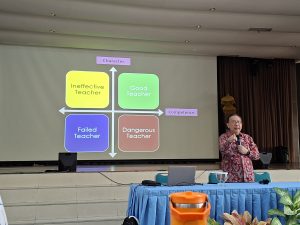 Melalui sesi interaktif dan reflektif, Prof. Djohan membagikan wawasan tentang bagaimana guru dapat menjadi fasilitator pembelajaran yang menumbuhkan rasa ingin tahu, daya juang, dan ketekunan peserta didik di era transformasi pendidikan.