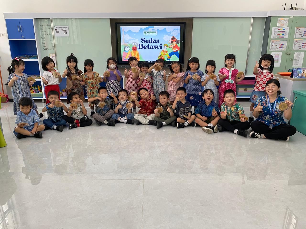 Pengenalan Budaya Betawi yang diadakan di KB-TK Santa Theresia pada tanggal 23 Agustus 2024 kemarin merupakan sebuah kegiatan yang bertujuan menanamkan rasa kecintaan terhadap budaya Indonesia. Pengenalan budaya Betawi ini dilakukan Bersama kakak-kakak dari SMK Santa Theresia.