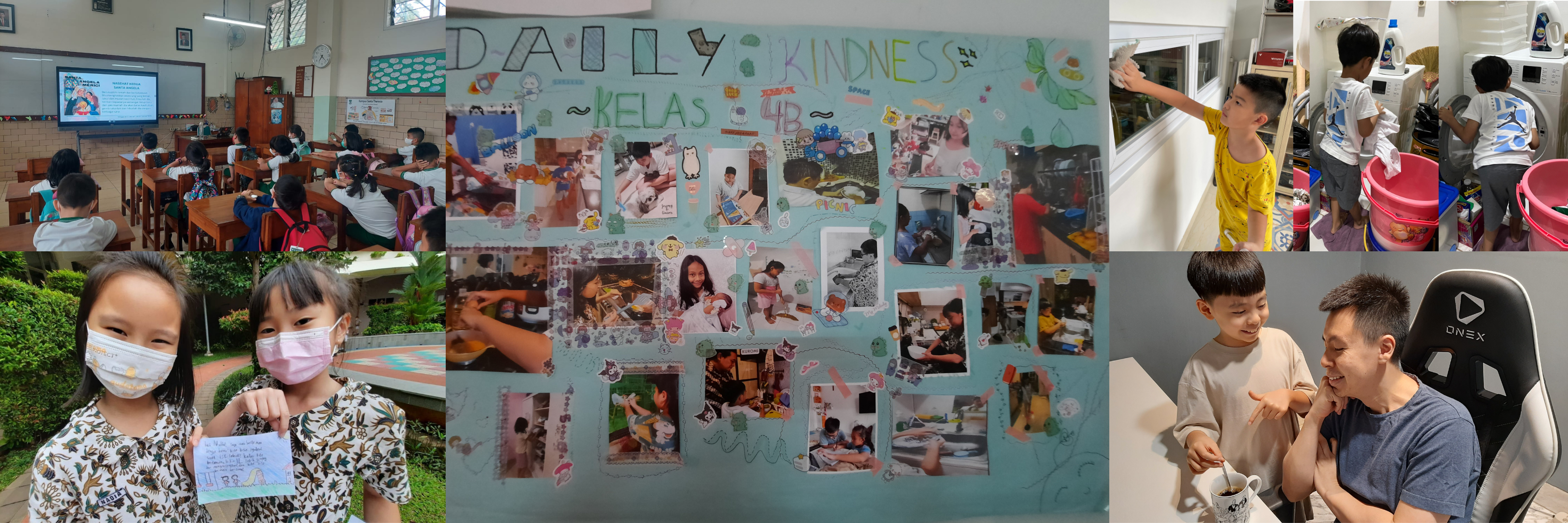 Setelah misa, peserta didik berbagi cerita tentang pengalaman mereka saat melakukan daily kindness di rumahnya. Kegiatan ini bertujuan melatih peserta didik untuk menghargai orang lain dengan mendengarkan dan memberi perhatian. Terakhir, mereka menempelkan foto Daily Kindness dan dipajang di kelas sebagai pengingat agar mereka mau terus melakukan pelayanan dengan rendah hati seturut teladan Santa Angela.