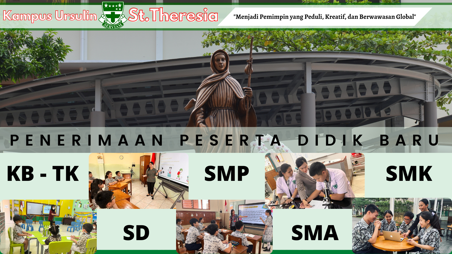 Penerimaan Peserta Didik Baru tahun ajaran 2024/2025 di sekolah Santa Theresia telah dimulai 1 September 2023 !
