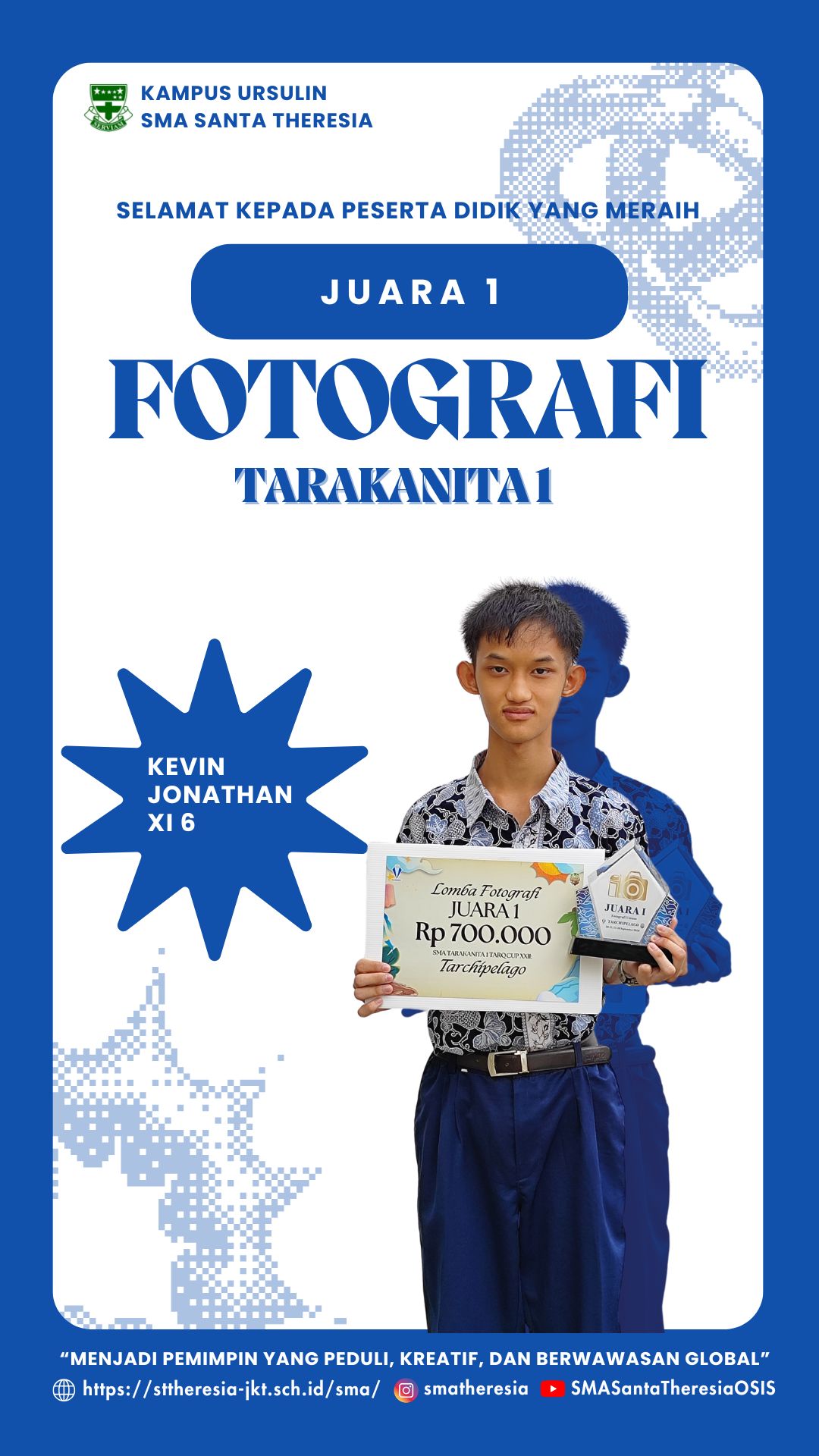 Selamat kepada Kevin Jonathan (XI – 6) yang berhasil meraih Juara 1 lomba Fotografi di SMA Tarakanika 1