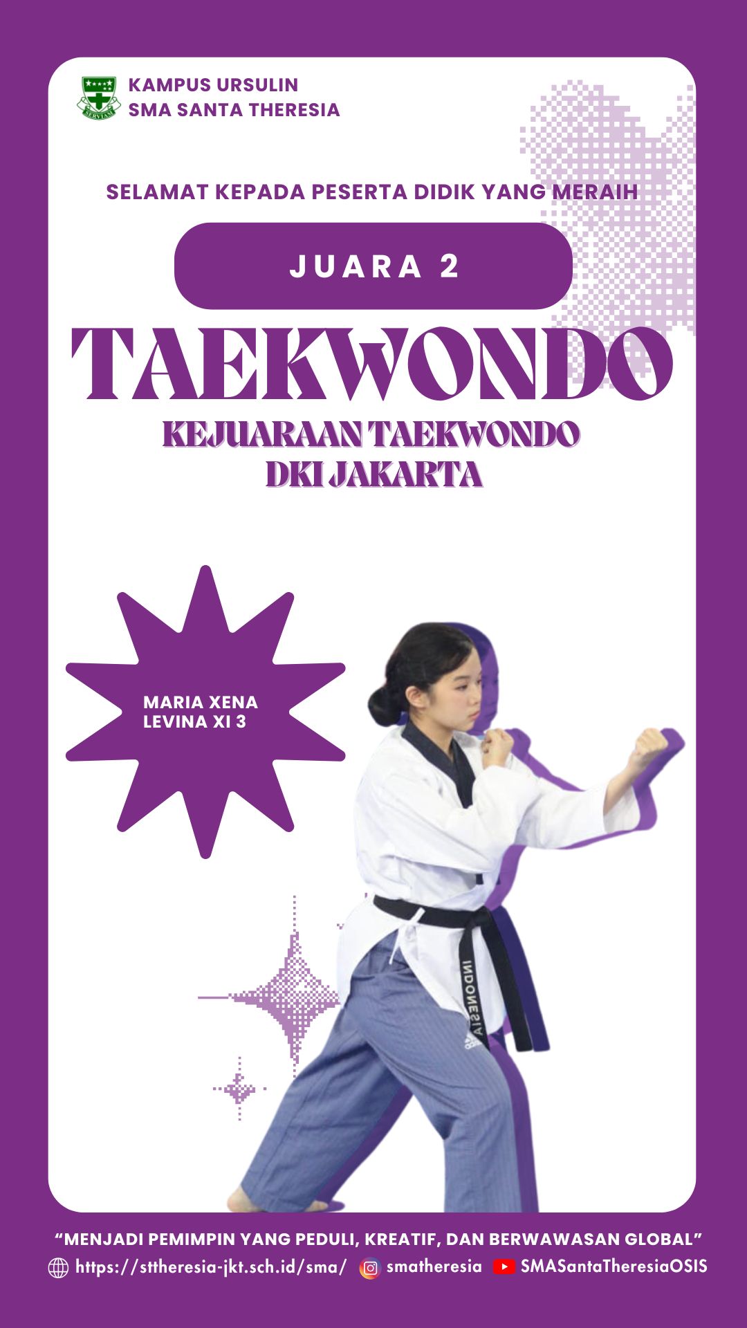 Selamat kepada Maria Xena Levian (XI – 2) yang berhasil meraih juara 2 pada kejuaraan Taekwodo DKI Jakarta