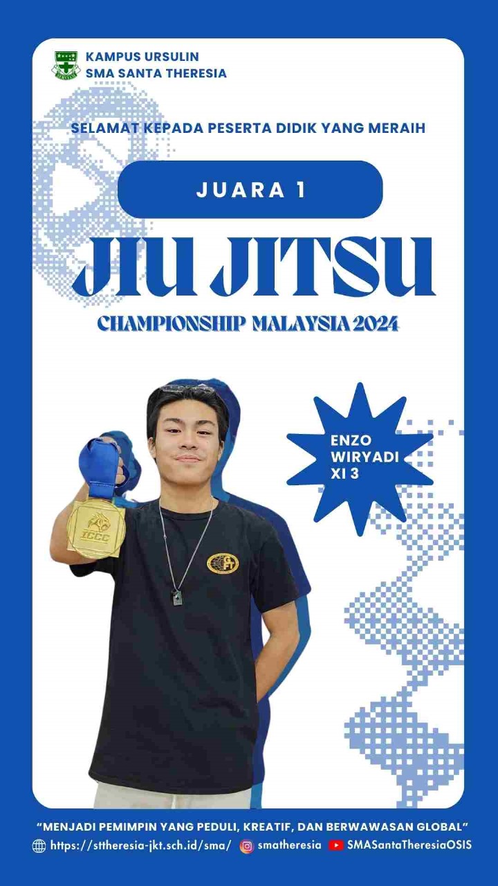 Selamat kepada Enzo Wiryadi (XI – 3) yang berhasil meraih Juara 1 Jiu Jitsu Championship Malaysia 2024