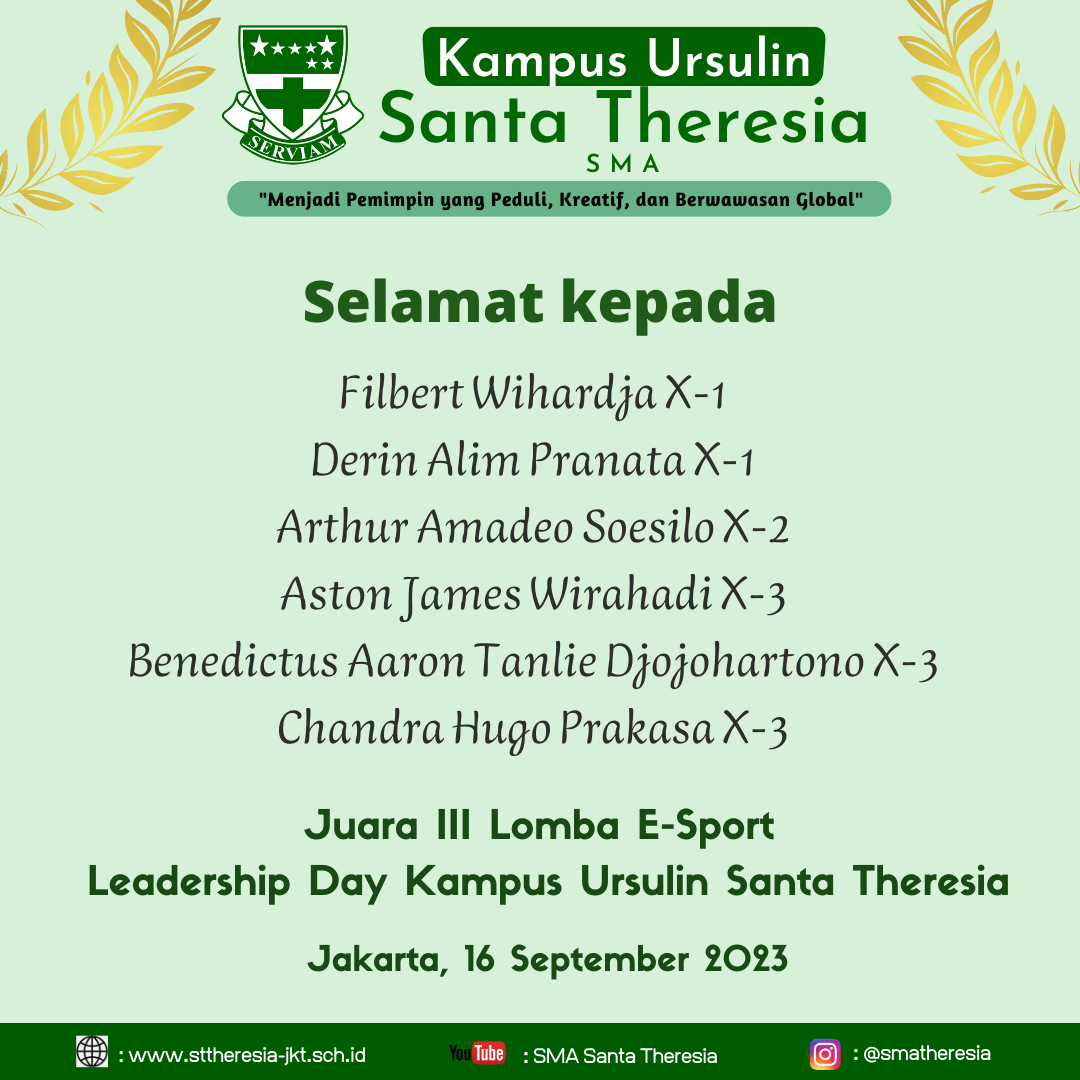 Selamat kepada tim E-Sport SMA Santa Theresia