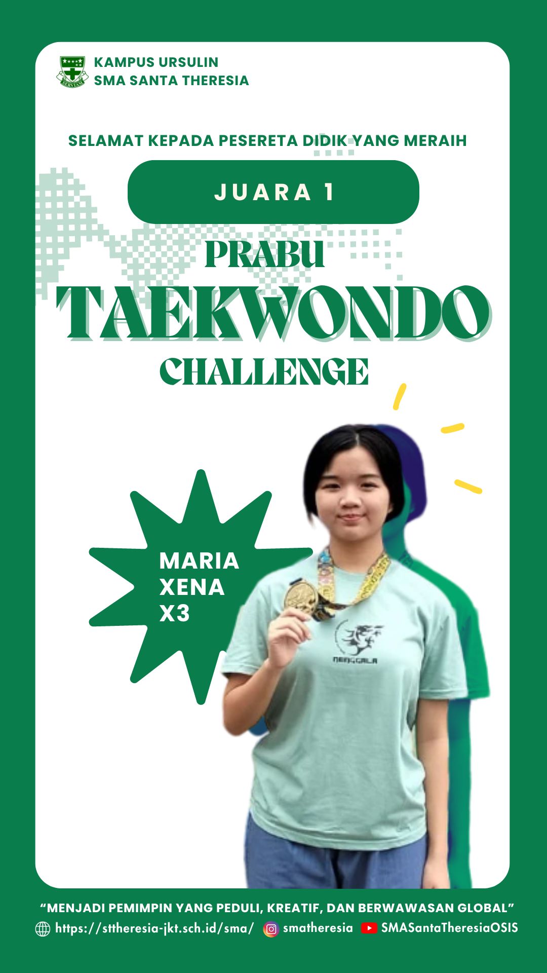 Selamat kepada Maria Xena (X – 3) yang berhasil meraih Juara 1 Prabu Taekwodo Challenge 2024
