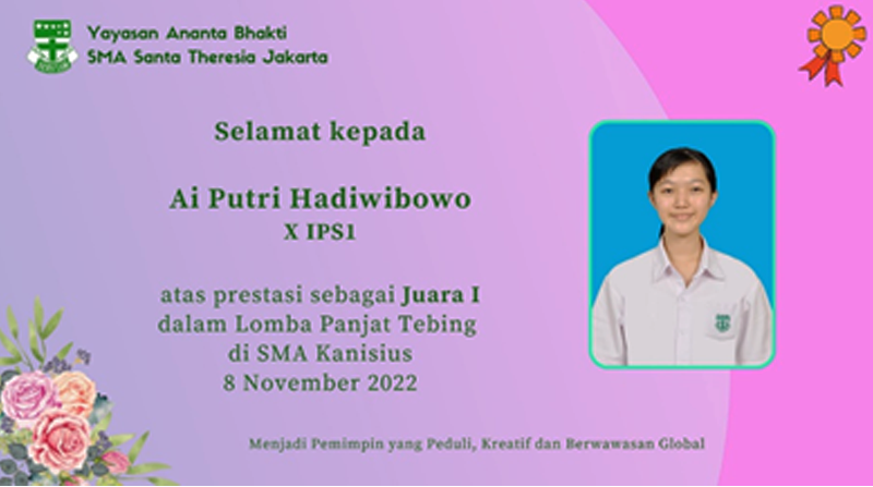 Selamat atas prestasi yang diraih peserta didik SMA Santa Theresia dalam O2SN tingkat Jakarta Pusat 1