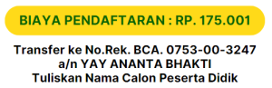 Transfer biaya pendaftaran ke no.rek. BCA 0753-00-3247 a/n YAY ANANTA BHAKTI