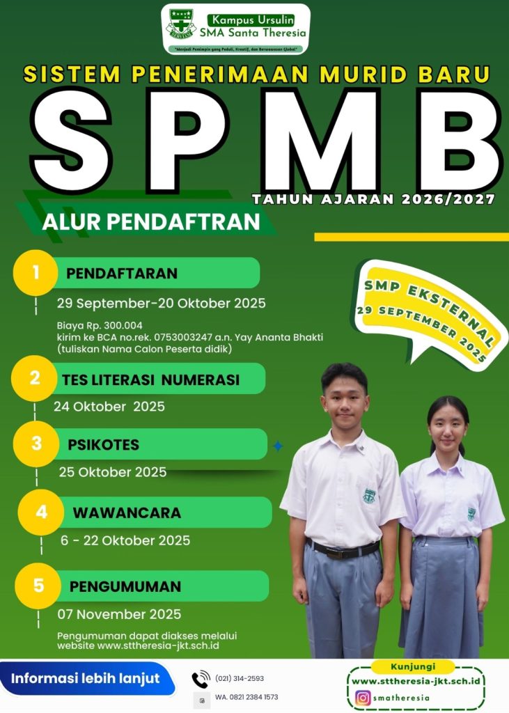 Upload bukti transfer biaya pendaftaran , foto bukti pembayaran SPMB (diberikan keterangan nama calon peserta didik) dikirimkan ke email : admisippdb2122@sttheresia-jkt.sch.id, selanjutnya mengisi link pendaftaran serta mengupload berkas. - Informasi Penting